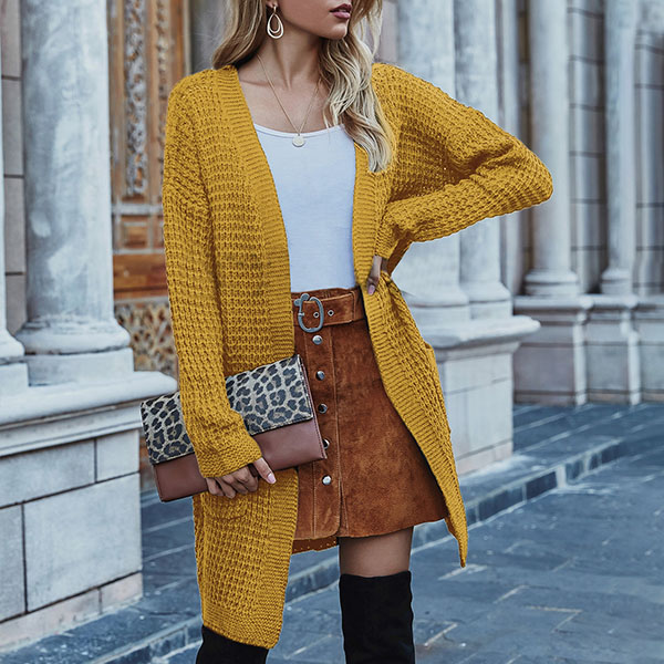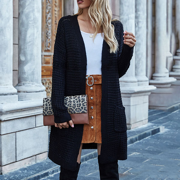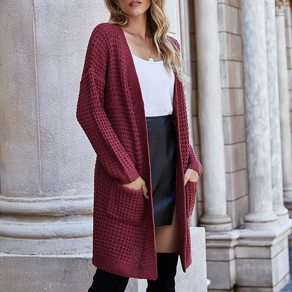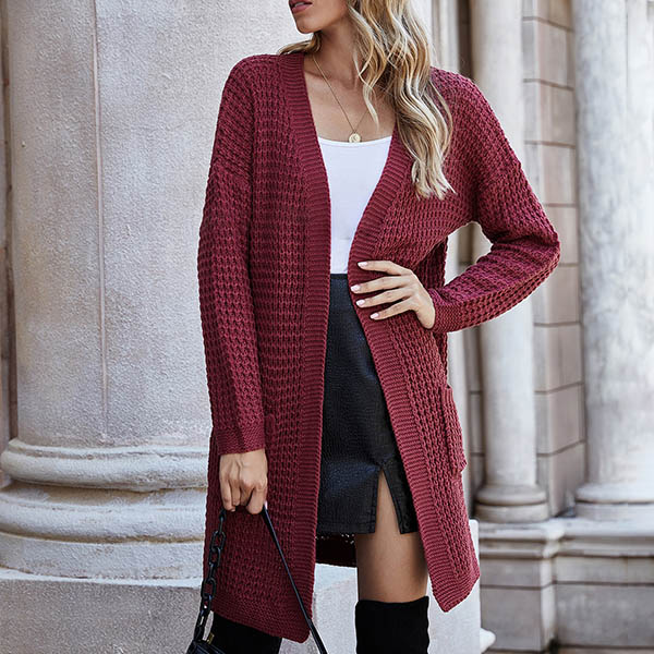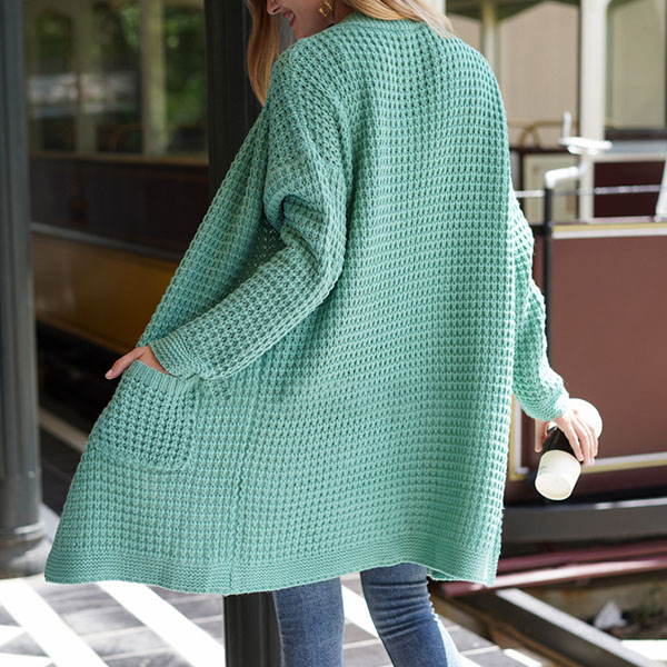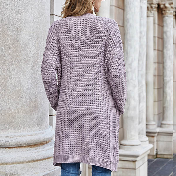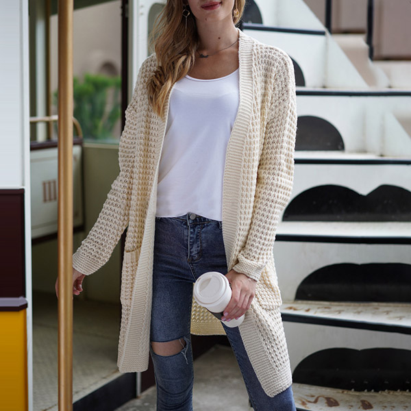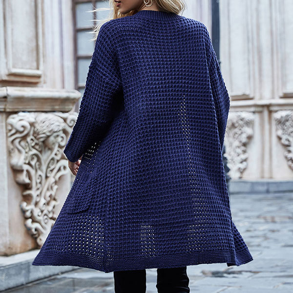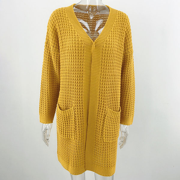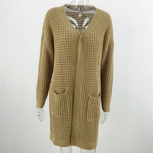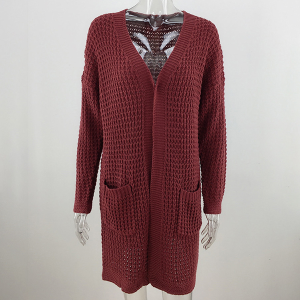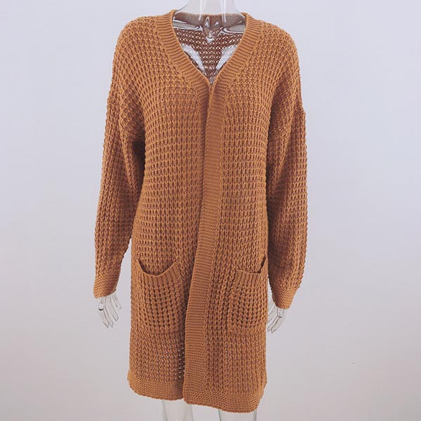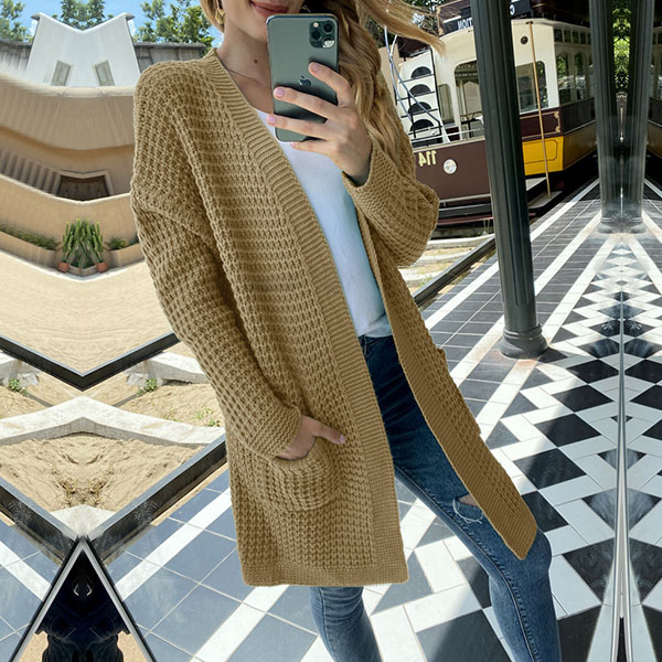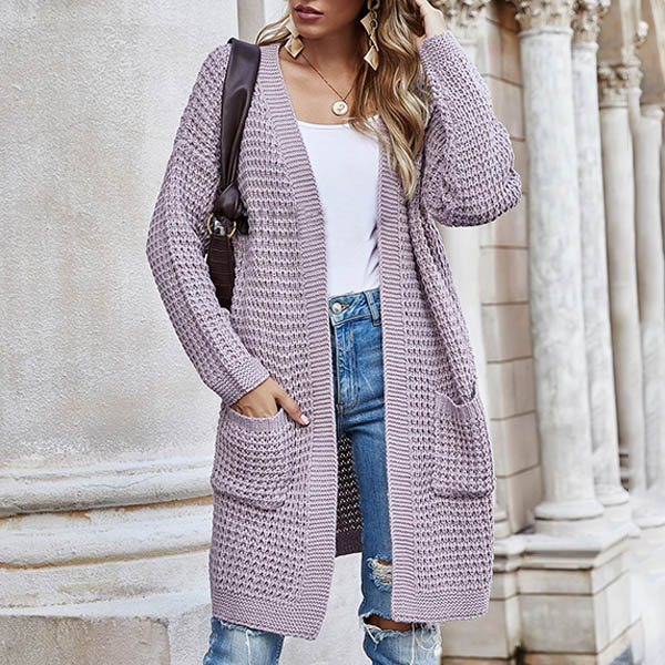 Fashion Long Sleeve Front-pocket Loose Knit Cardigan