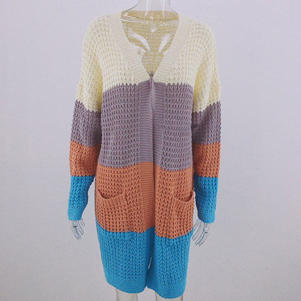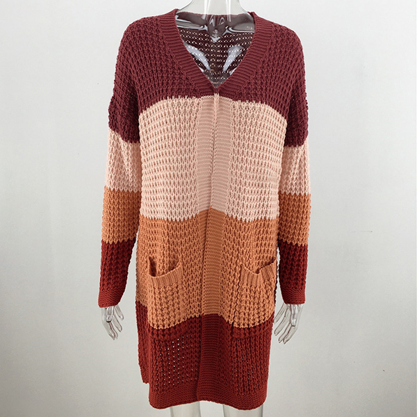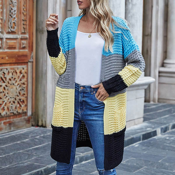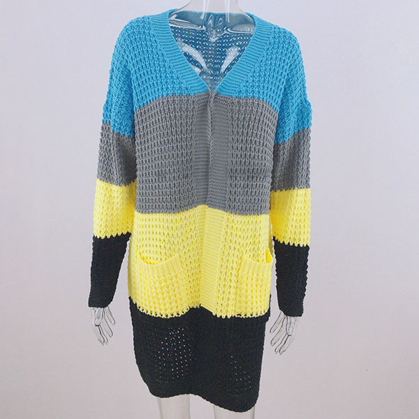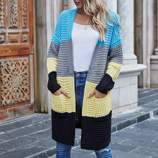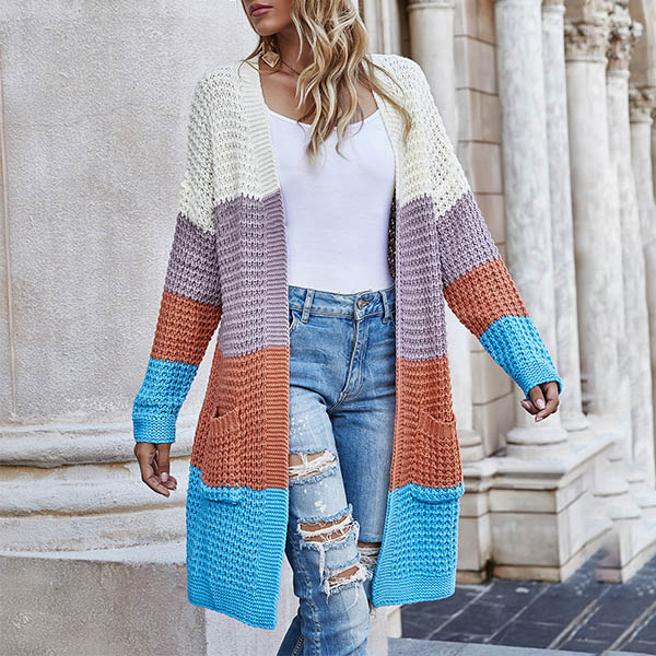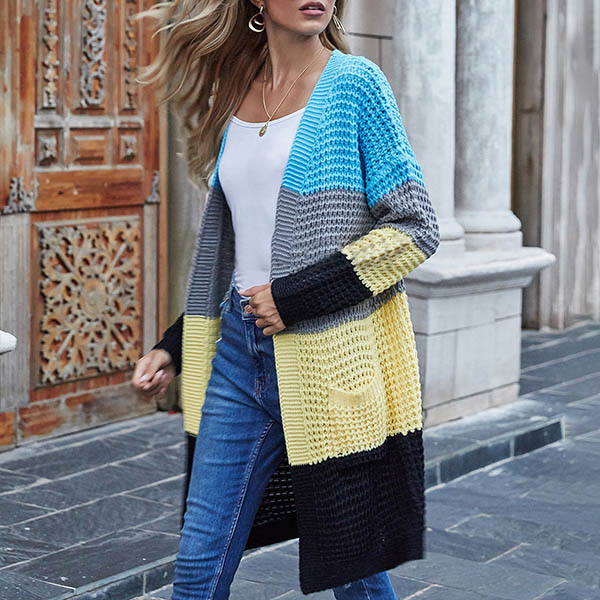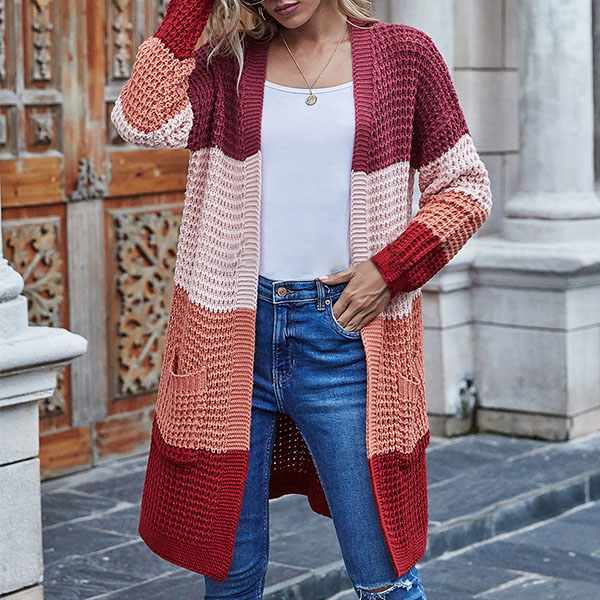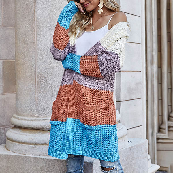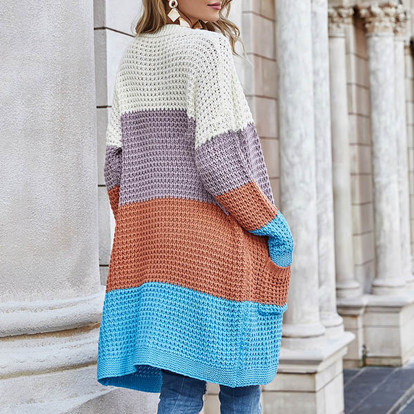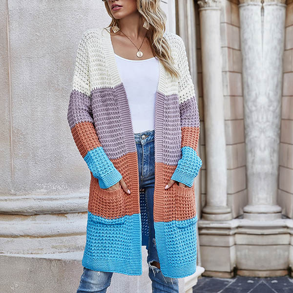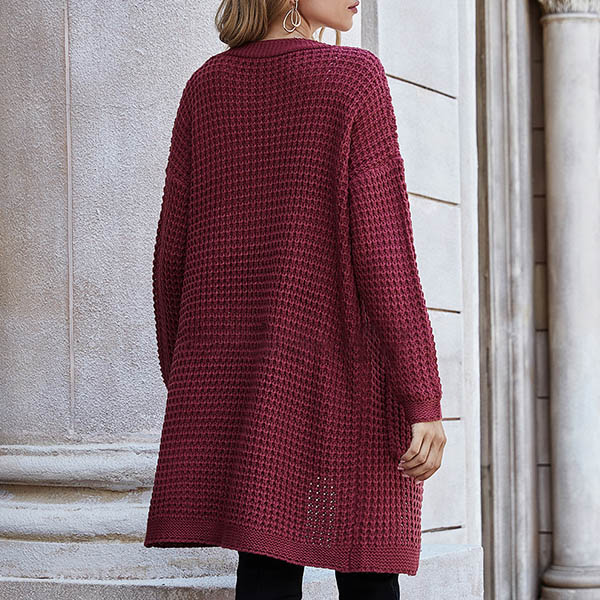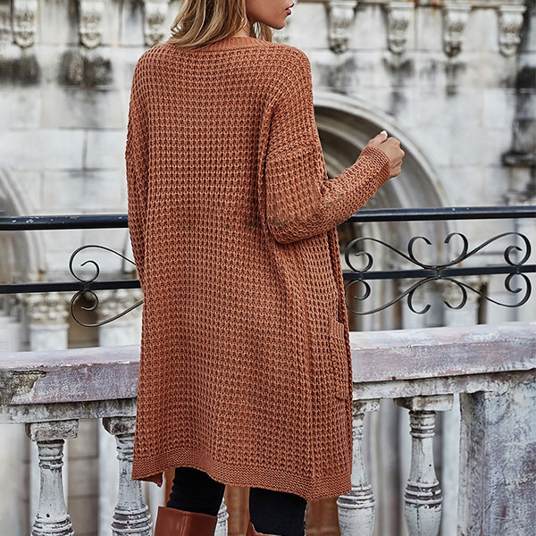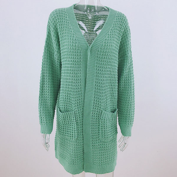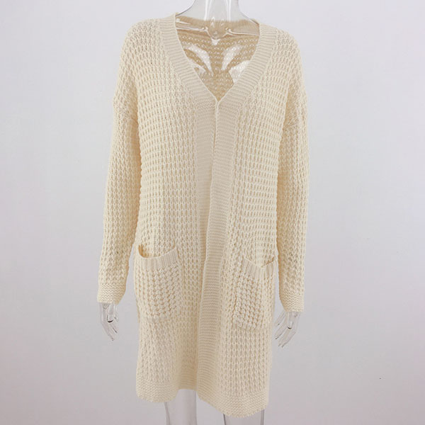 Fashion Long Sleeve Front-pocket Loose Knit Cardigan