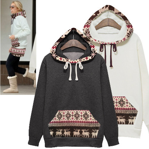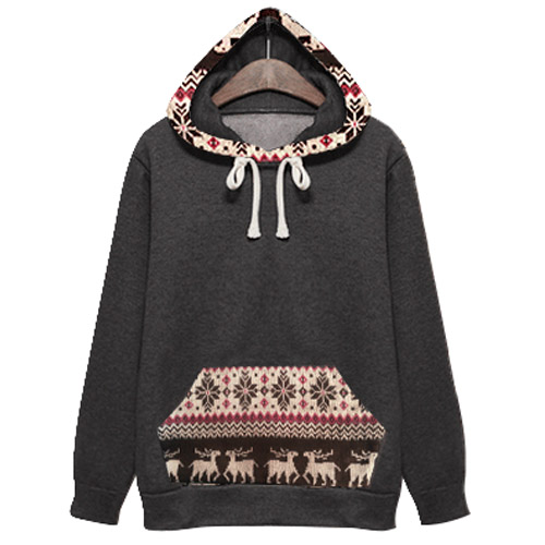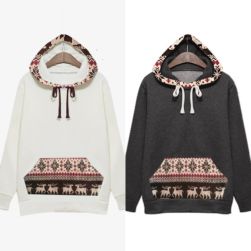 fawn printed pattern,with long sleeve and hooded design,elegant and stylish. Plus,its Kangaroo pocket