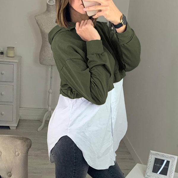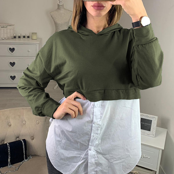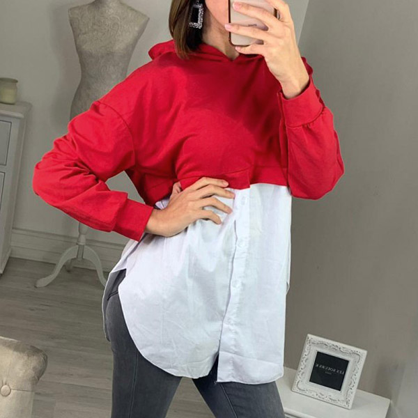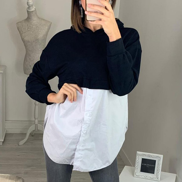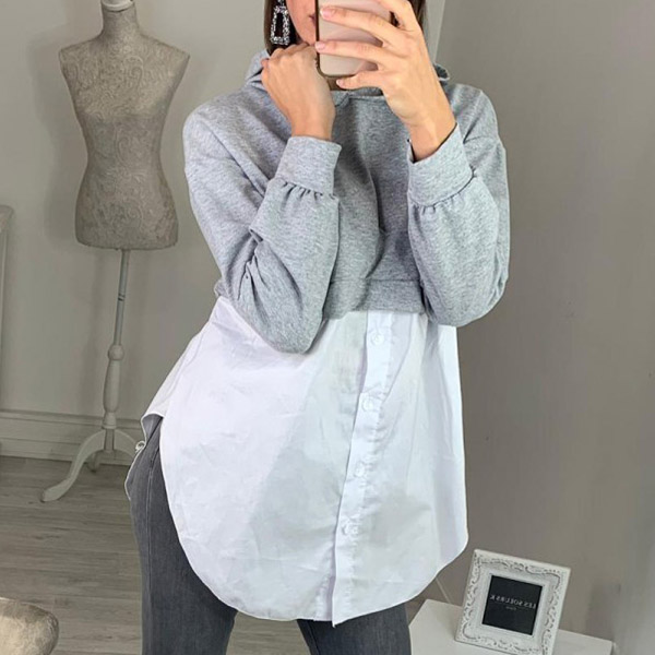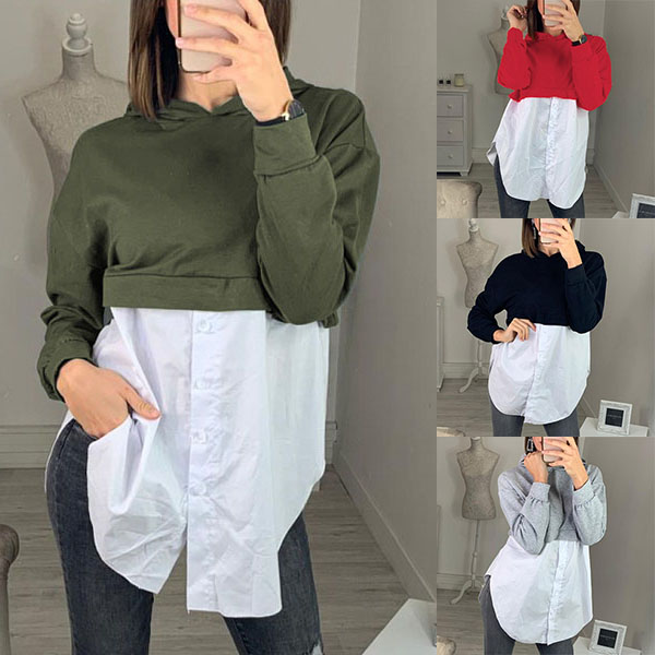 Fashion Long Sleeve Hooded Irregular Hem Spliced Sweatshirt