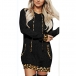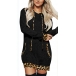 Fashion Long Sleeve Hooded Leopard Spliced Sweatshirt Dress