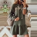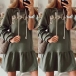 Fashion Long Sleeve Hooded Letters Printed Ruffle Hem Sweatshirt Dress
