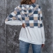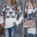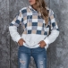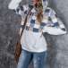 Fashion Long Sleeve Hooded Plaid Spliced Plush Sweatshirt