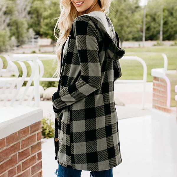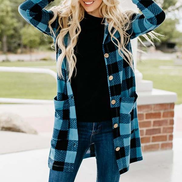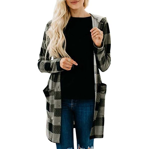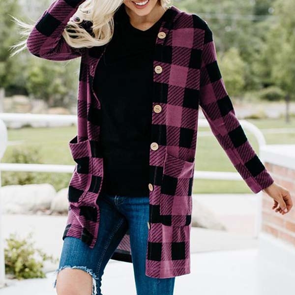 If you like plaid element,then this plaid cardigan might arouse your attention. It is finished