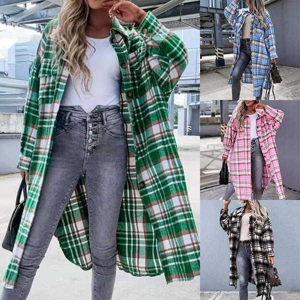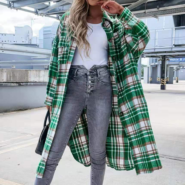 Fashion Long Sleeve Plaid Coat