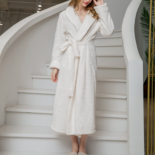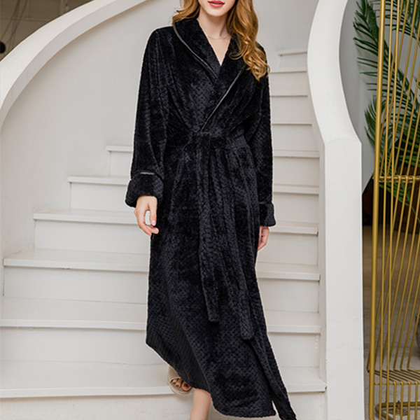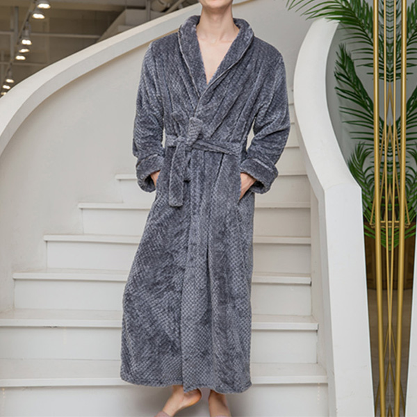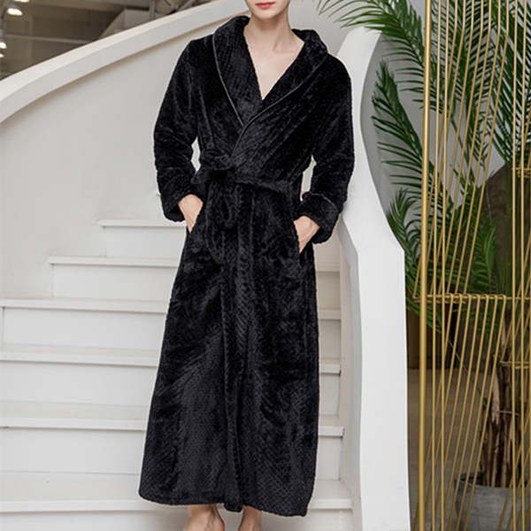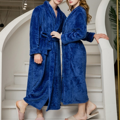 After taking the bath in cold days,this plush bathrobe would be your perfect choice. The super soft plush fabric can ensure the comfy and warmth. Solid color style,finished with long sleeve,hooded and waist strap design,this bathrobe is perfect fit for your home time. You can wear it with your lover together to enjoy your sweet time.