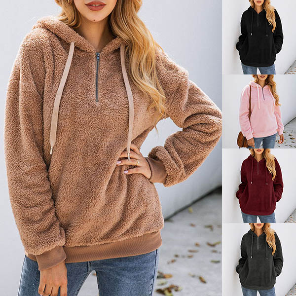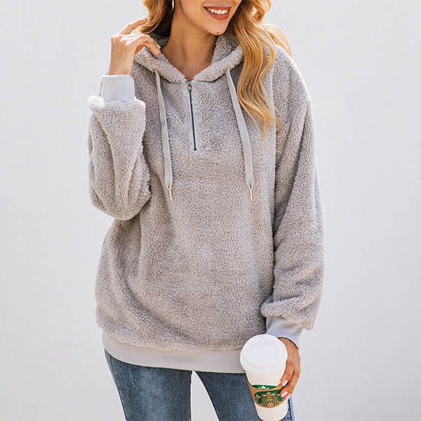 Fashion Long Sleeve Hooded Plush Sweatshirt