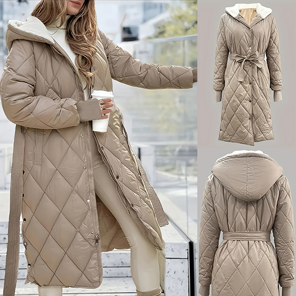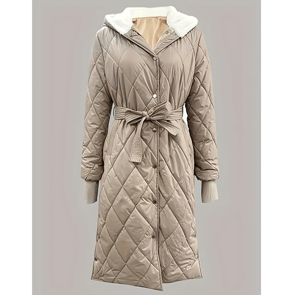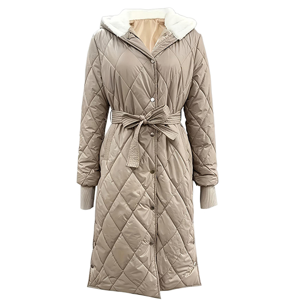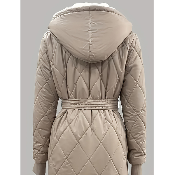 Fashion Long Sleeve Hooded Qulited Jacket with Belt