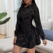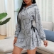 Fashion Long Sleeve Hooded Side Lace-up Printed Dress