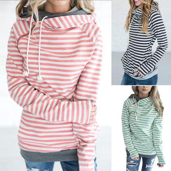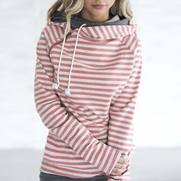 Like stripe element? Then this stripe sweatshirt can easily strike your mind. The long sleeve and hooded silhouette maintain the classic design style,while its soft and breathable fabric can give you a long-lasting comfort. No matter matching with a jeans,skirt or jeans,you can look fashionable enough!