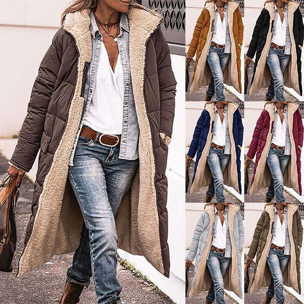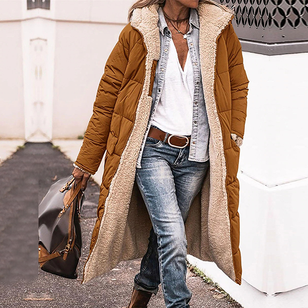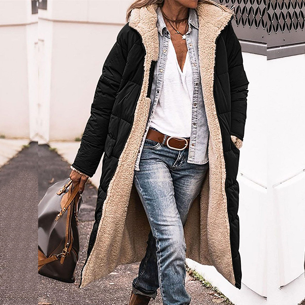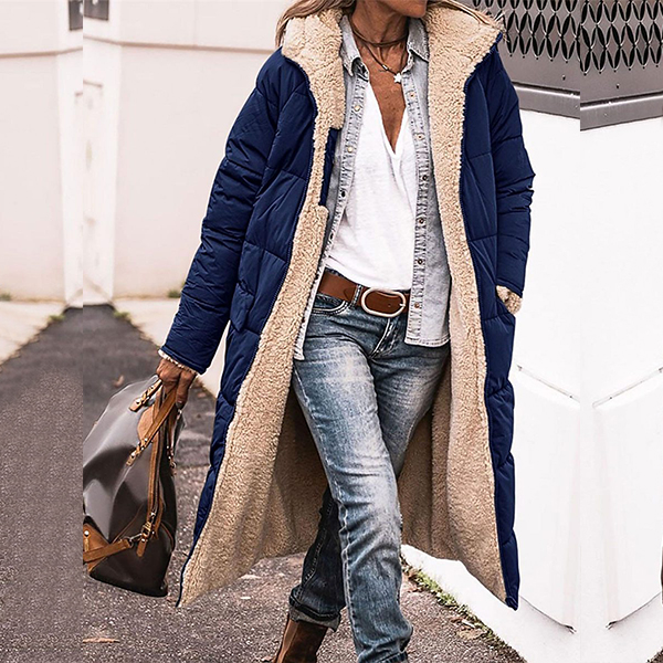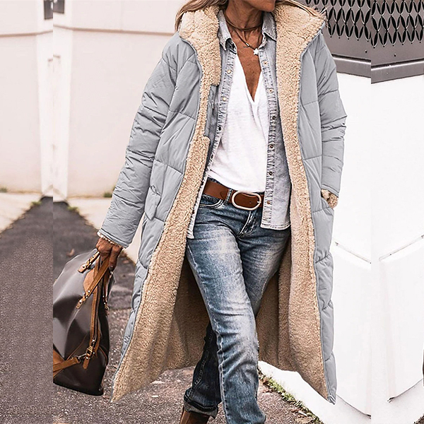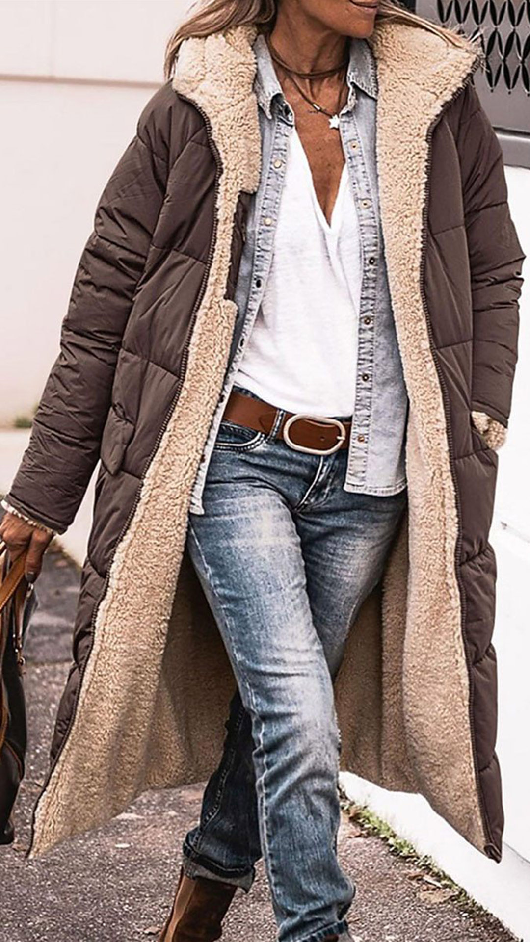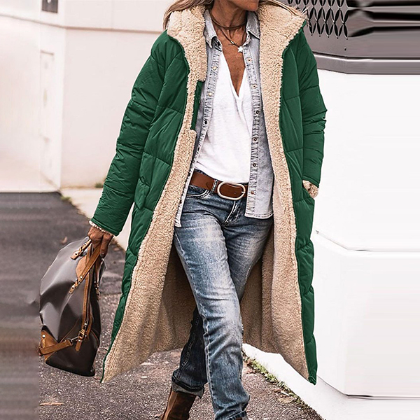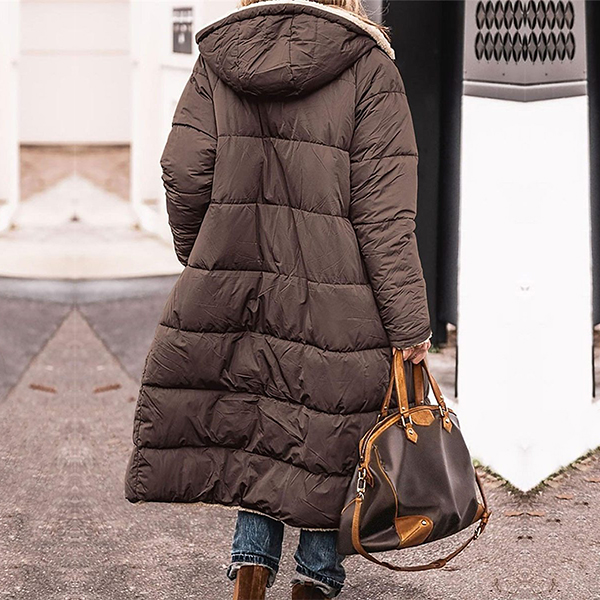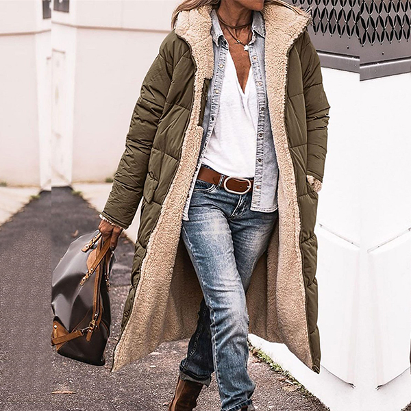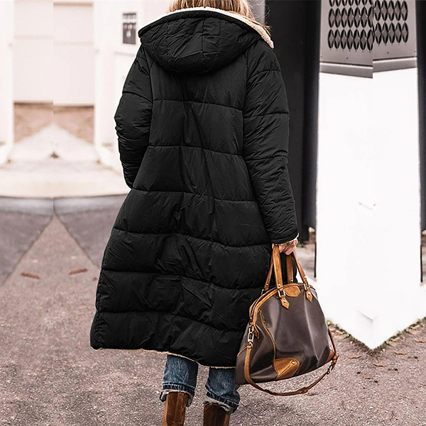 Fashion Long Sleeve Hooded Warm Plush Lined Quilted Longline Jacket for Women