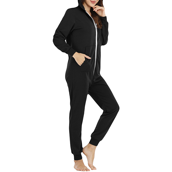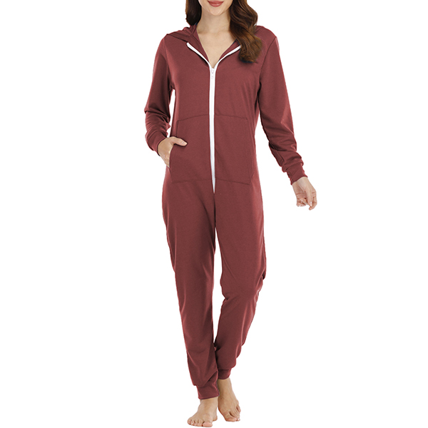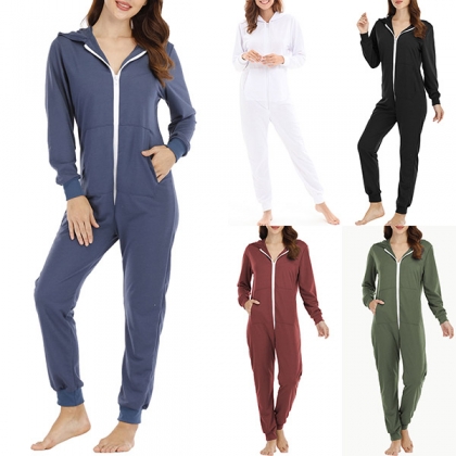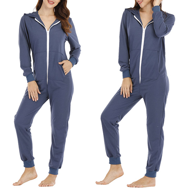 Fashion Long Sleeve Hoodie Pajamas Jumpsuit with Zip Closure