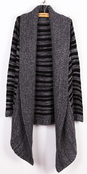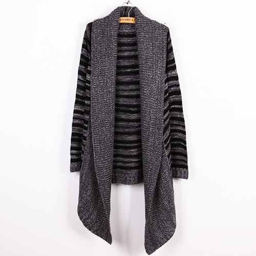 Fashion Long Sleeve Irregular Striped Knit Cardigan