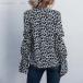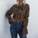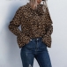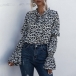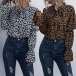 Fashion Long Sleeve Lace-up Bow-knot Collar Leopard Printed Blouse