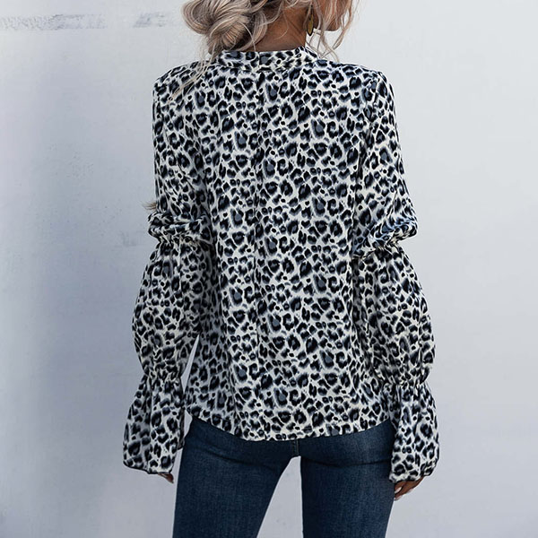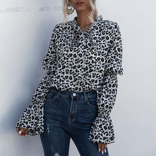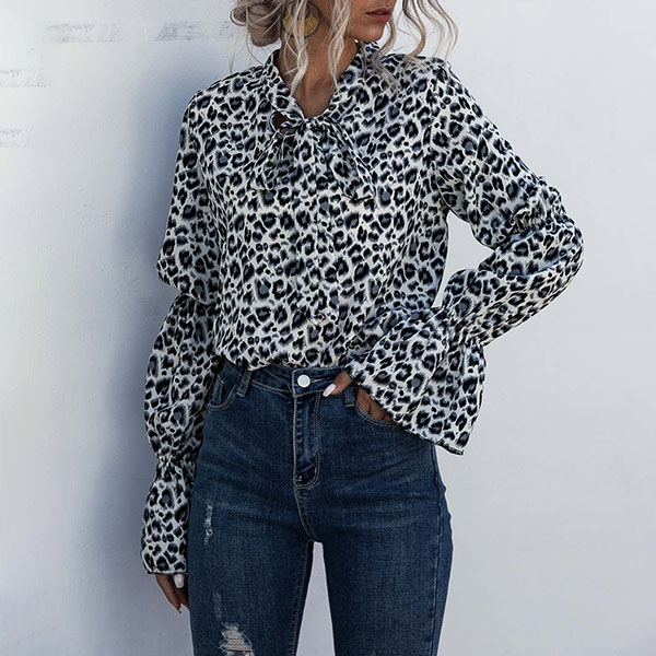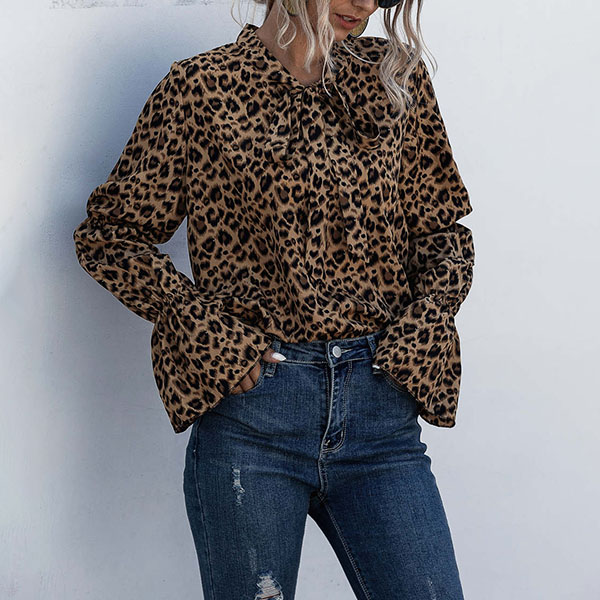 Finish a more delicate and stylish daily look with the help of this blouse. The leopard printed details make this piece look so eye-catching,while the unique long sleeve and lace-up bow-knot collar design will make this piece look more attractive and sweet. You can match it with different style bottoms to achieve for different fashion styles.