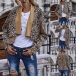 Fashion Long Sleeve Lapel Irregular Hem Leopard Printed Cardigan