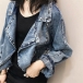 Fashion Long Sleeve Lapel Irregular Hem Slim Fit Denim Blazer Coat