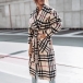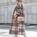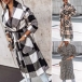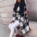 Fashion Long Sleeve Lapel Plaid Woolen Coat