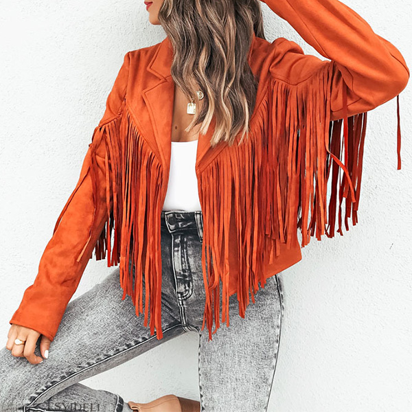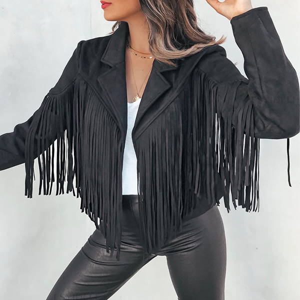 Fashion Long Sleeve Lapel Tassels PU Leather Jacket