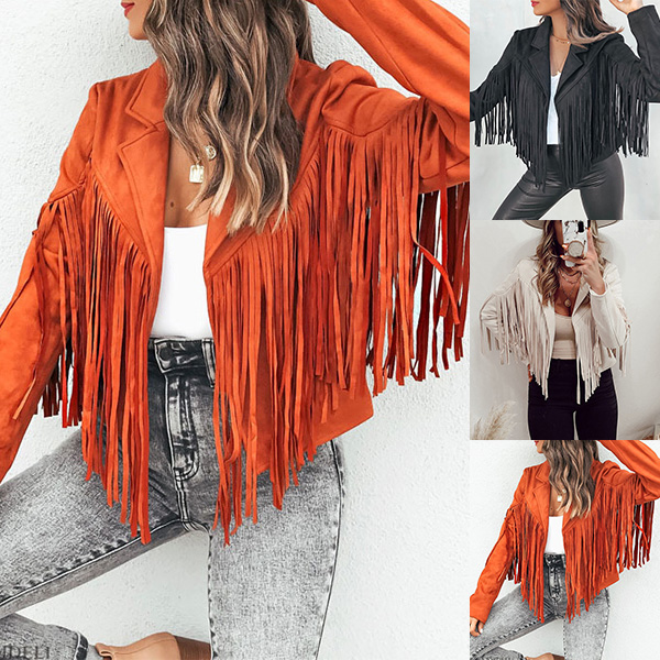 When the weather gets cold,just slip into this long sleeve PU leather jacket,it will keep you warm and comfy all the day. It features delicate details,such as lapel and its tassels design. You should have such one in your wardrobe!