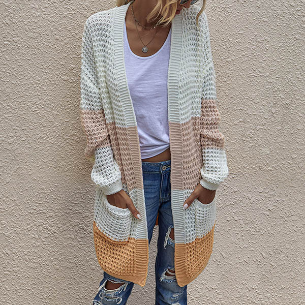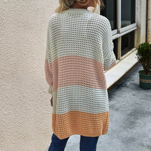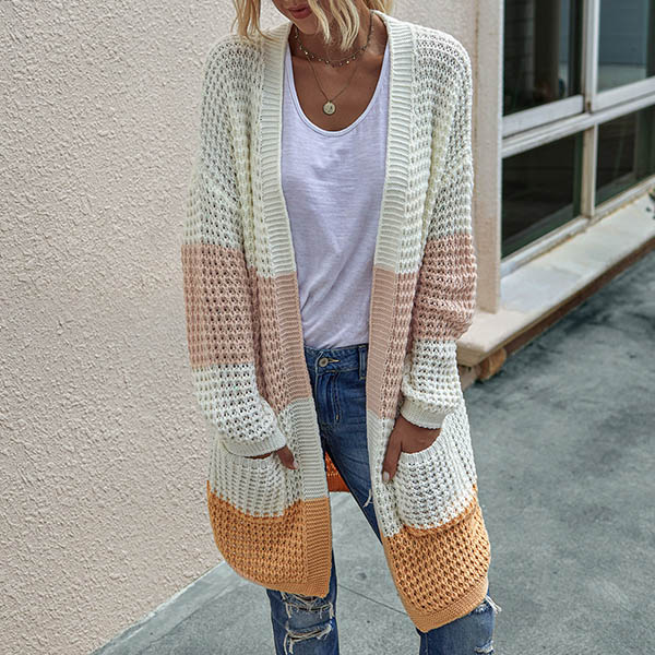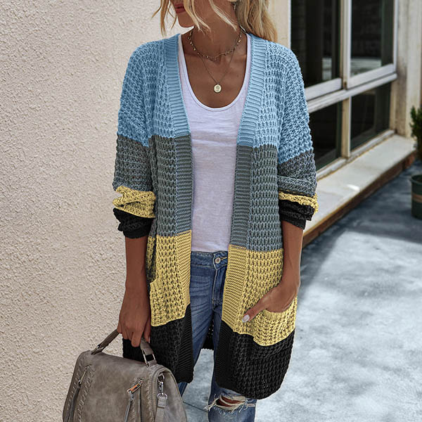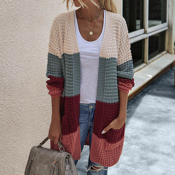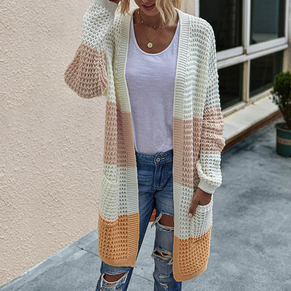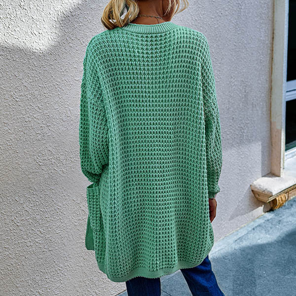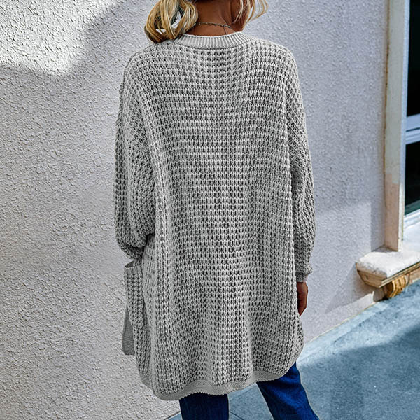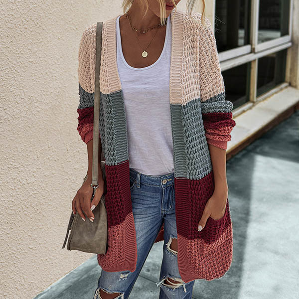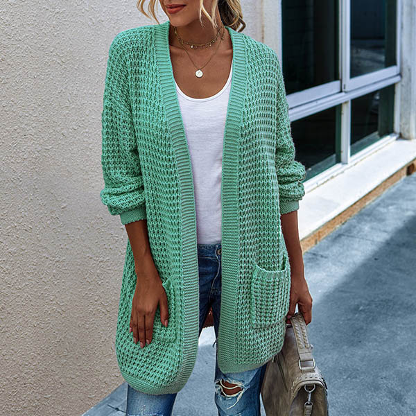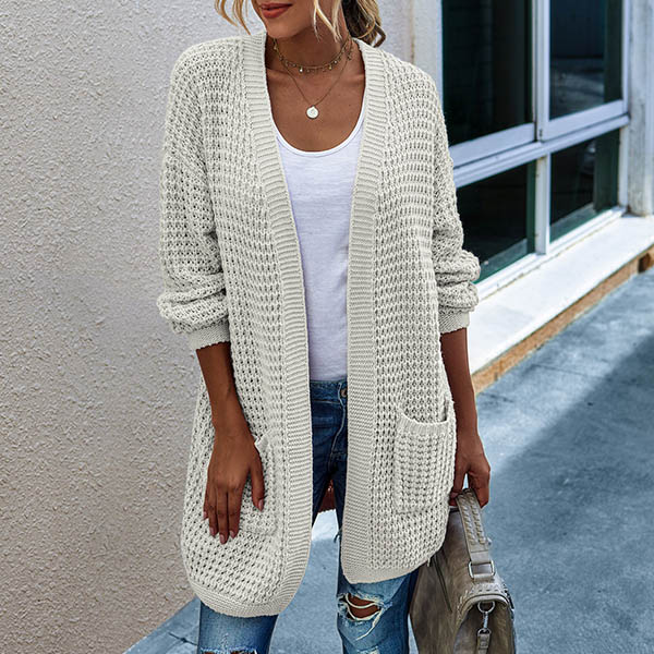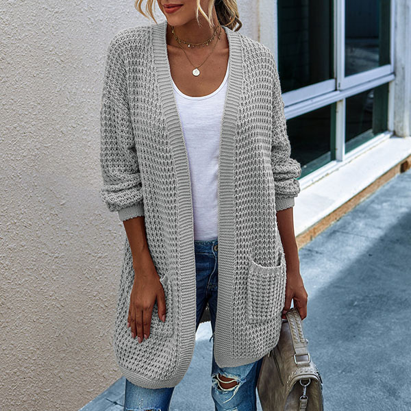 For these neither too hot days nor too cold days,this knit cardigan can be your perfect partner. It is finished with long sleeve,front-pocket and a loose silhouette,this knit cardigan not only can keep you warm,but also can be matched with different style outfits. So why not take interest in it?