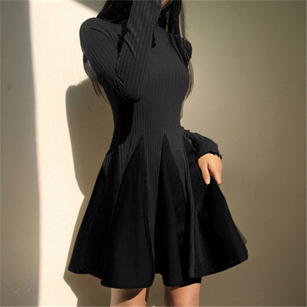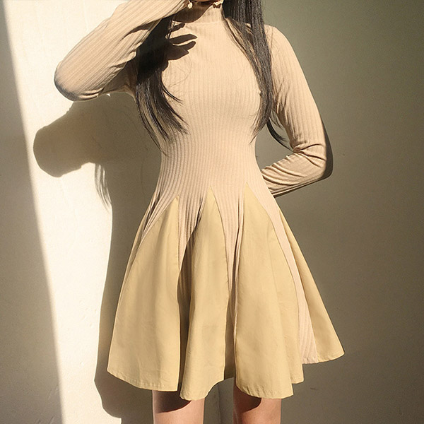 Fashion Long Sleeve Mock Neck High Waist A-line Dress