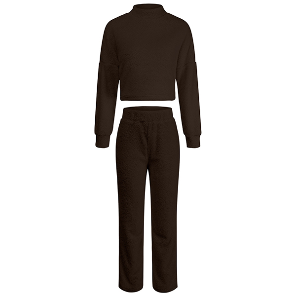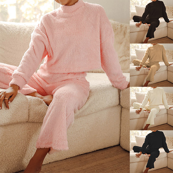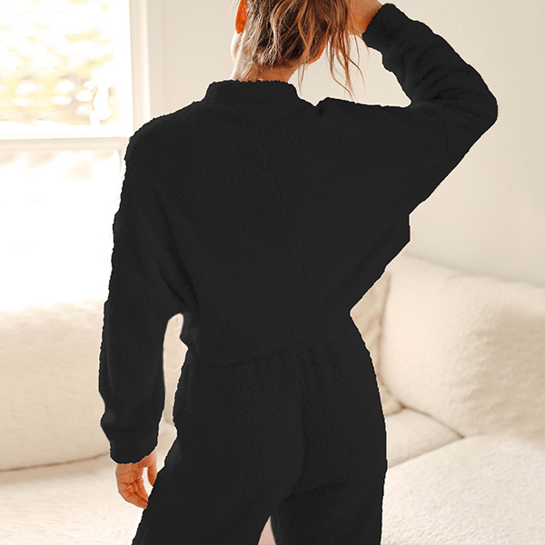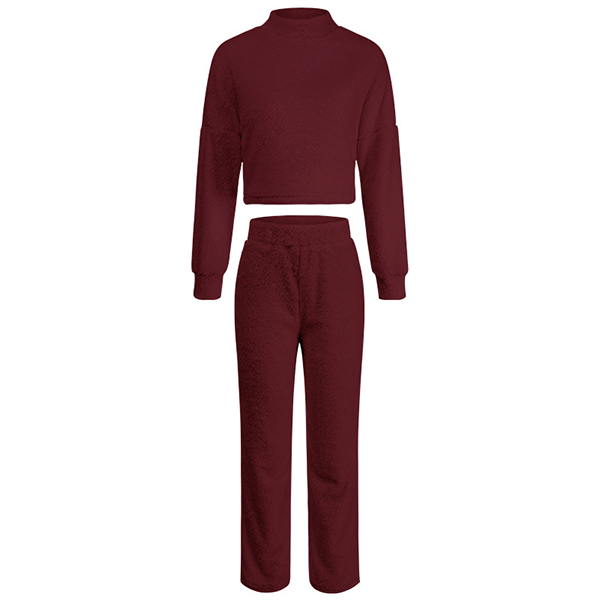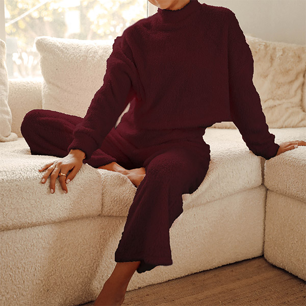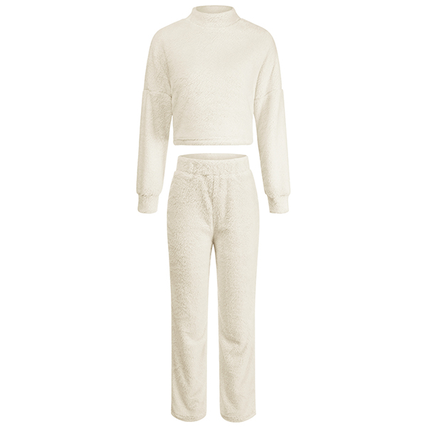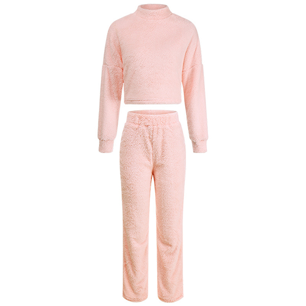 Fashion Long Sleeve Mock Neck Plush Top + Pants Home-wear Two-piece Set