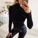 Wanna a stylish and all-match bottoming top? Then you can make your eyes focused on this wonderful piece. The flattering black tone and rhinestone details make it look so stylish and attractive. Crafted from soft and breathable fabric,with long sleeve and mock neck design,this piece is sure to offer the comfy.