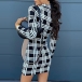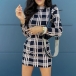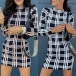 Fashion Long Sleeve Mock Neck Slim Fit Plaid Dress