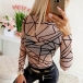 Your wardrobe needs such a stylish and all-match t-shirt. It features chic printed pattern,finished with long sleeve,mock neck and a fit silhouette,this piece not only can give you a comfortable day,but also can showcase your perfect body-line. Perfect fit for matching with different style outfits.