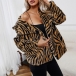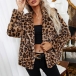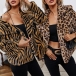 Fashion Long Sleeve Noched Lapel Leopard/Zebra-stripe Printed Plush Coat