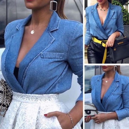 It is wise for you to slip into this denim coat when the days get cold. Finished with long sleeve