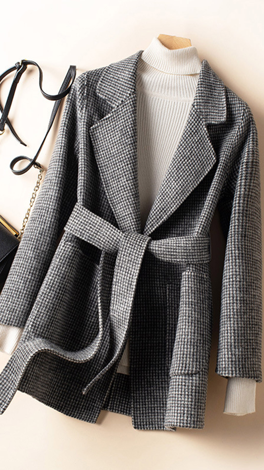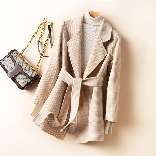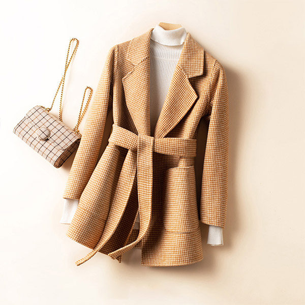 For these cold days,this duffle coat can be your wardrobe staple. The houndstooth element design makes it look so stylish and popular. Finished with long sleeve,notched lapel and a clean,fit silhouette,this duffle coat can maintain your style and charm. Moreover,the waist strap design will make this piece look more attractive. So why not buy one?
