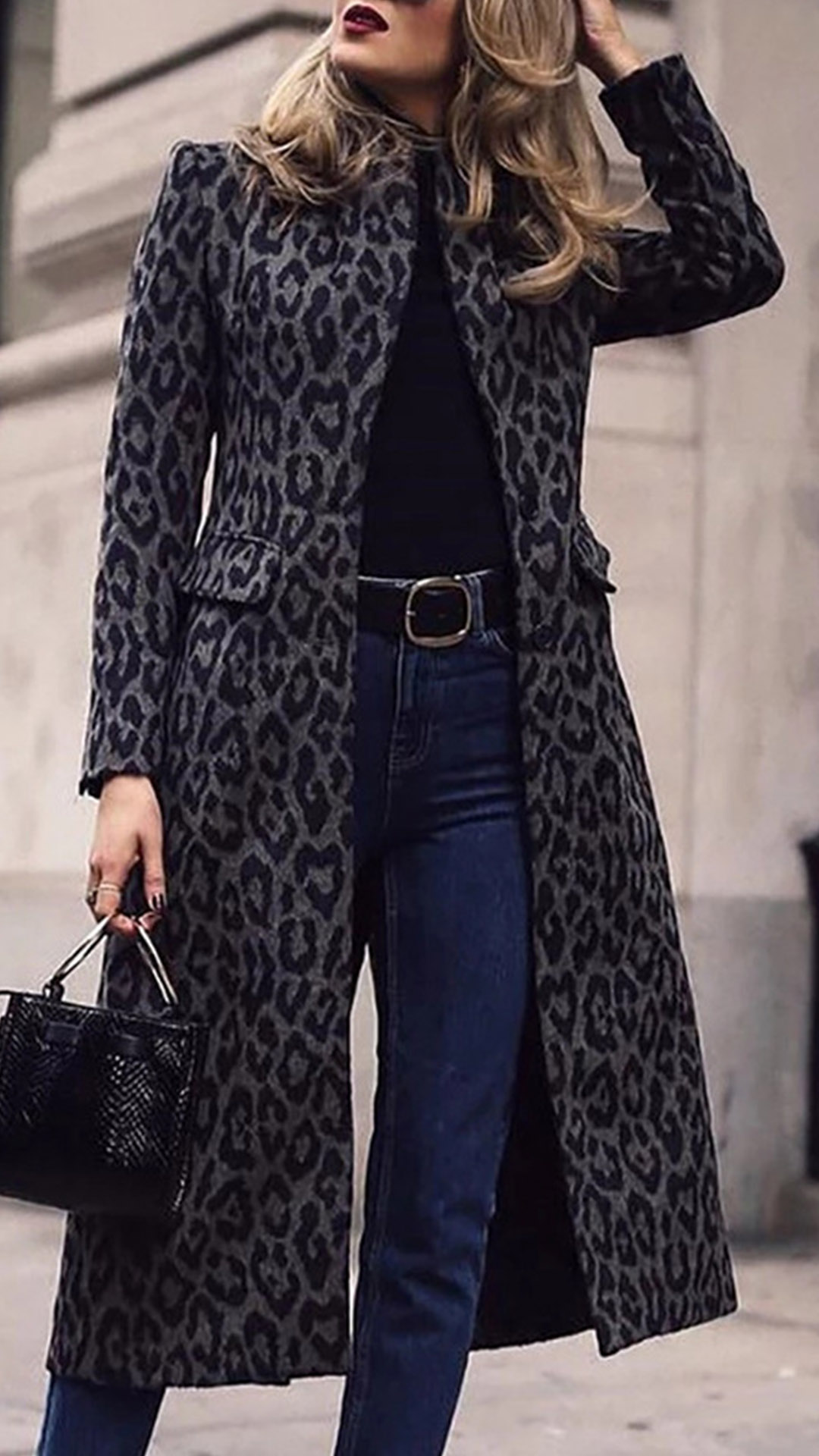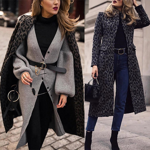 As we all know,the leopard element is always popular. So why not catch up with this fashion trend with this leopard overcoat? It is finished with long sleeve,notched lapel and a clean,fit silhouette,this overcoat not only can showcase your slender figure,but also can exude your style,charm and personality.