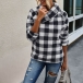 Fashion Long Sleeve Oblique Collar Plush Plaid Sweatshirt