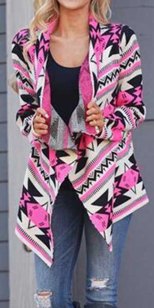 chic and eye-catching printed pattern,with long sleeves,an open-front and cozy fabric,can give