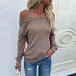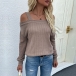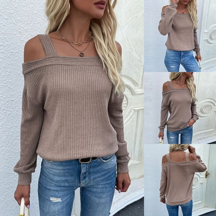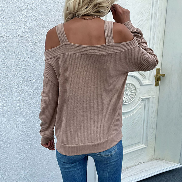 Fashion Long Sleeve Open Shoulder Cami Knitted Sweater