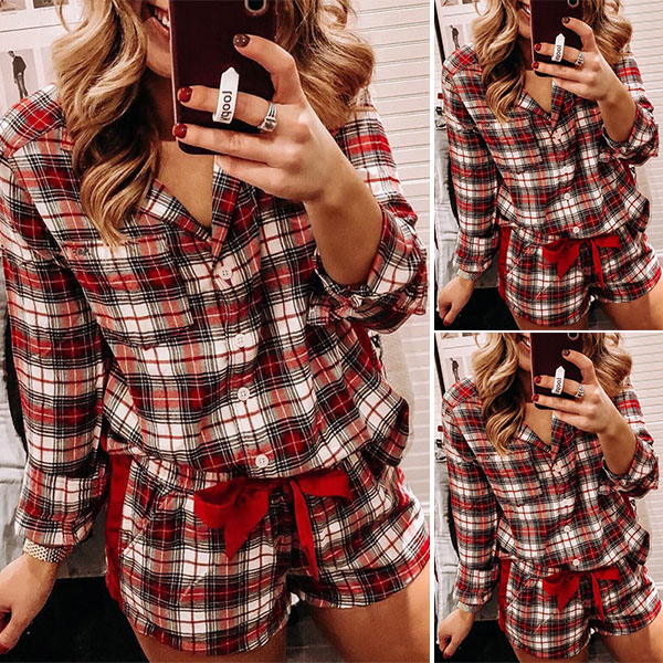 During your home time,you can trust in this to-piece set to have an utmost comfort. Including a long sleeve top and a shorts,crafted from soft and breathable fabric,this two-piece set can give you a long-lasting comfort. And the plaid element design makes it look more stylish and attractive. Just enjoy your home time and casual weekends with this two-piece set.