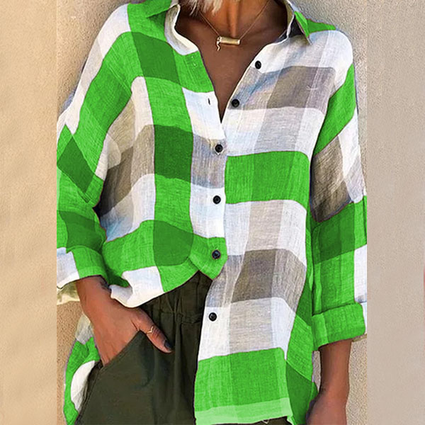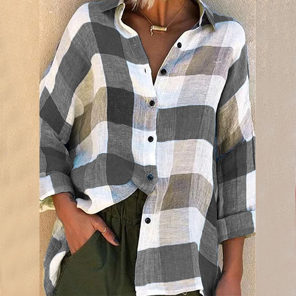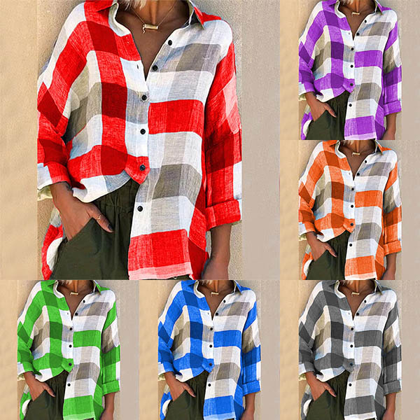 If you are looking for a casual style shirt,then look no further than this piece. The contrast color plaid element design makes this piece look so stylish and attractive. Finished with long sleeve,POLO collar and a loose silhouette,this piece knows how to maintain the comfy while it exudes your personality and style.