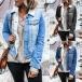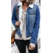 Fashion Long Sleeve PLO Collar Faux Lamb Wool Lining Denim Coat