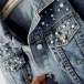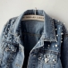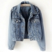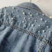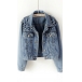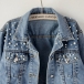 Fashion Long Sleeve POLO Collar Beaded Denim Coat