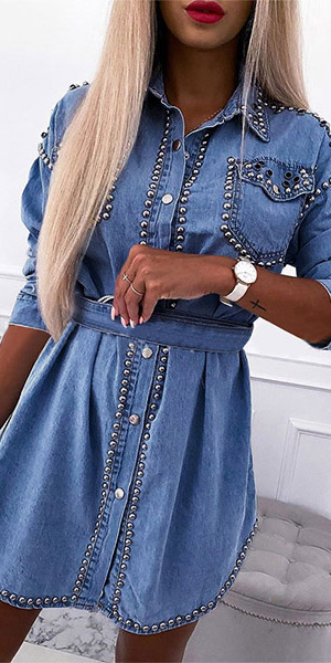 The fashionable and straightforward denim shirt, with its own style attribute, can make you stand out in the crowd in minutes, especially some special denim piece,take this one for example. This long shirt is decorated with beads and crafted from high-end fabric, which can strike your mind immediately.