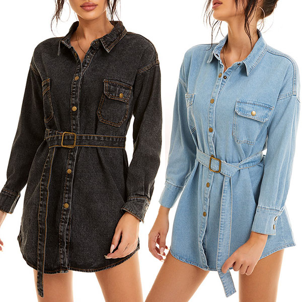 Your daily style can have an instant boost when you wear this denim dress. It is finished with long sleeve,POLO collar and single-breasted design,this dress knows how to make you look stylish yet charming. Moreover,the waist strap design can offer you a more beautiful look. Attracted? Then invite this piece to your wardrobe!