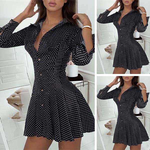 Start your wonderful day from this wonderful shirt dress. The dots printed details make this piece look so eye-catching and playful. Finished with long sleeve,POLO collar and single-breasted design,this dress knows how to give you a cozy yet stylish and modern style.