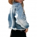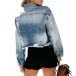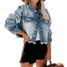 Fashion Long Sleeve POLO Collar Frayed Hem Ripped Denim Coat