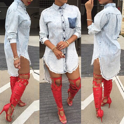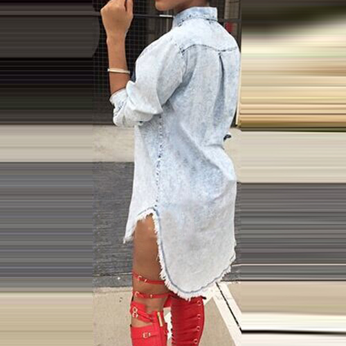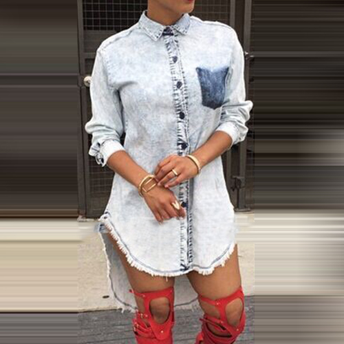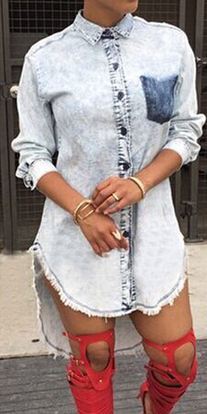 with a buttoned front, a chest patch pocket, a basic collar and a high-low hem. You can try to add a