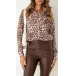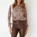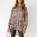 Fashion Long Sleeve POLO Collar High-low Hem Leopard Printed Loose Shirt