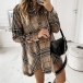 Fashion Long Sleeve POLO Collar High-low Hem Loose Plaid Dress