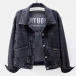 Fashion Long Sleeve POLO Collar Letters Printed Denim Coat