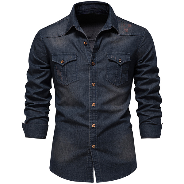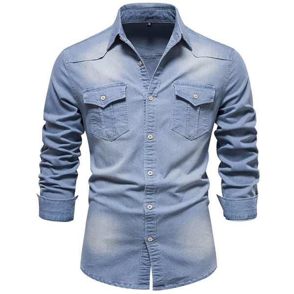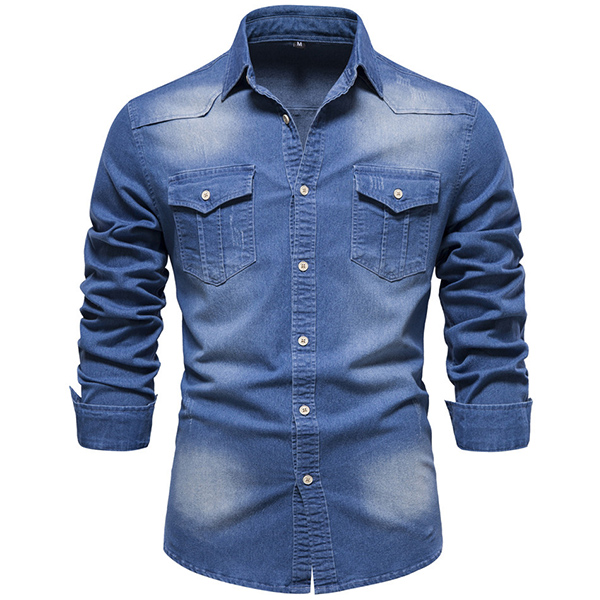 In these autumn days,this long sleeve denim shirt can be your perfect partner. Finished with long sleeve,POLO collar,single-breasted and a fit silhouette,this delicate yet stylish denim shirt can make you look handsome as well as exude your male appeal.